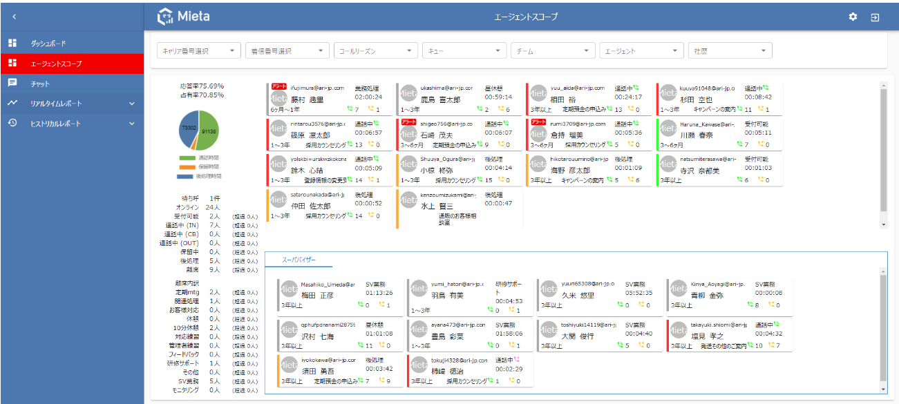 SVは、エージェントスコープ画面で、アラートが上がっているオペレータを確認することができます。