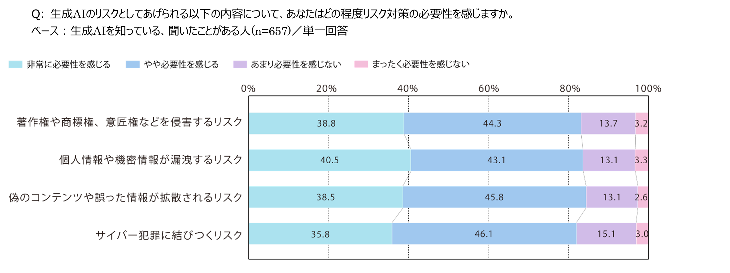 ■生成AIのリスク、どの程度リスク対策の必要性を感じるか。いずれのリスクに対しても8割以上の人がリスク対策に関して必要性を感じている。