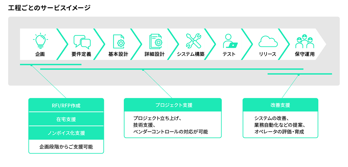 他の技術部門と共にプロジェクトを推進することで、コンタクトセンターに関するより広範囲な課題解決をご支援することができます。